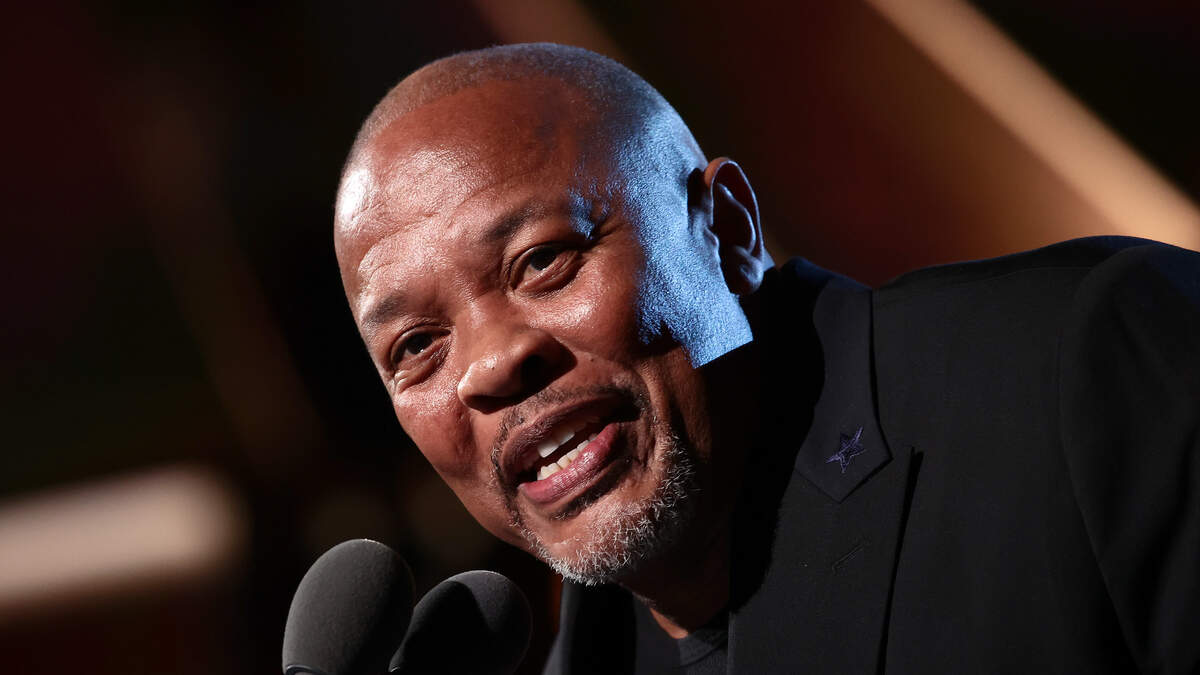 CLEVELAND, OHIO - OCTOBER 30: Dr. Dre speaks onstage during the 36th Annual Rock & Roll Hall Of Fame Induction Ceremony at Rocket Mortgage Fieldhouse on October 30, 2021 in Cleveland, Ohio. (Photo by Dimitrios Kambouris/Getty Images for The Rock and Roll Hall of Fame )